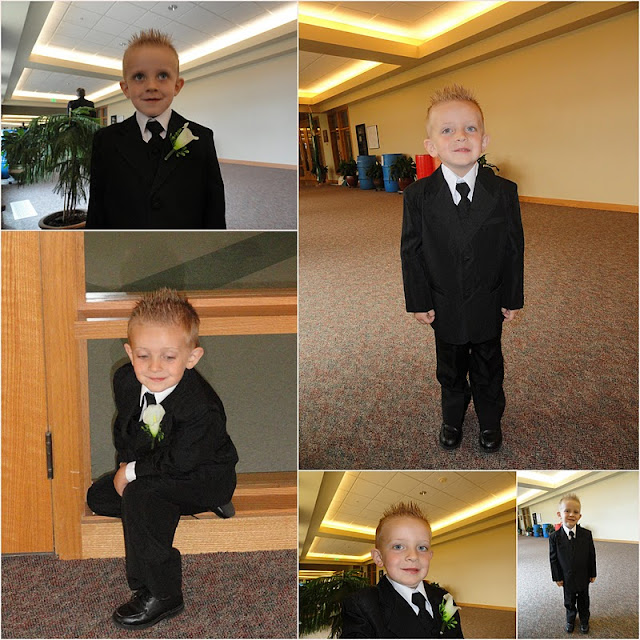 We got to the church pretty early before the wedding and waited around for awhile. I enjoyed taking lots of pictures of my little man! He looked SO handsome in his tuxedo!